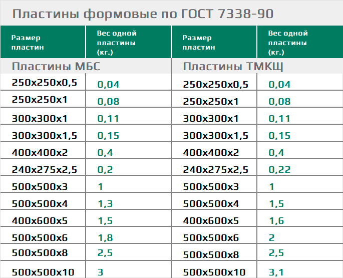 Пластины формовые предназначены для изготовления из них деталей путем вырезки или