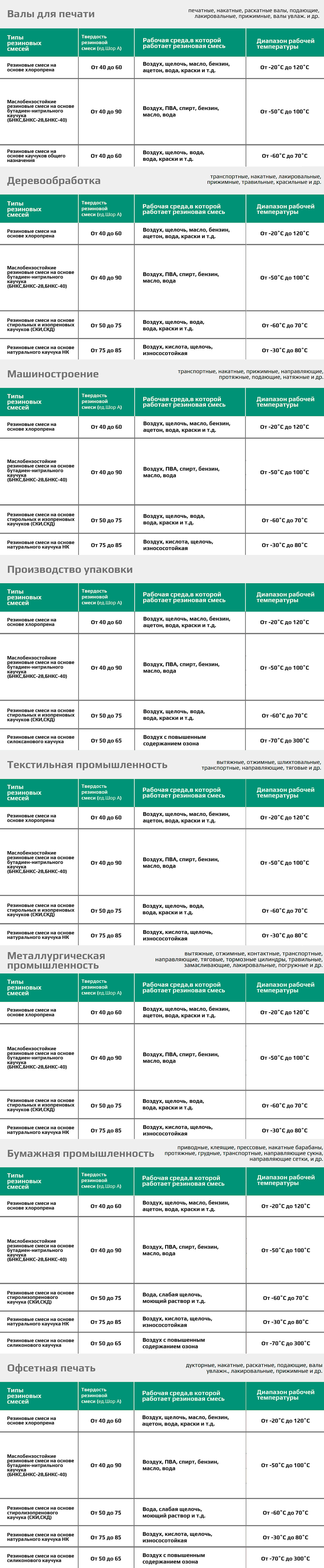 Резина используемая для обрезинивания. Многолетний опыт работы с резиновыми смесями позволяет использовать нам весь ассортимент резин. А также грамотно подобрать марку резины, которая будет наилучшим образом эксплуатироваться в конкретных условиях работы вала.